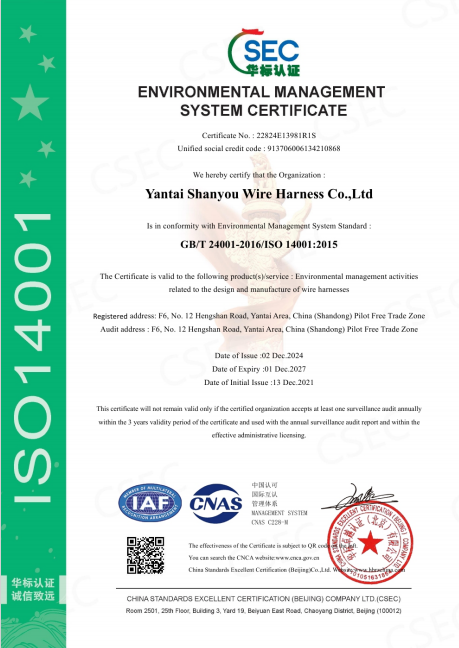 嚴格的質量管理,為全球客戶提供專業線束產品